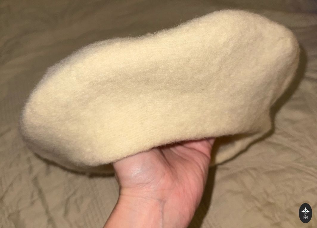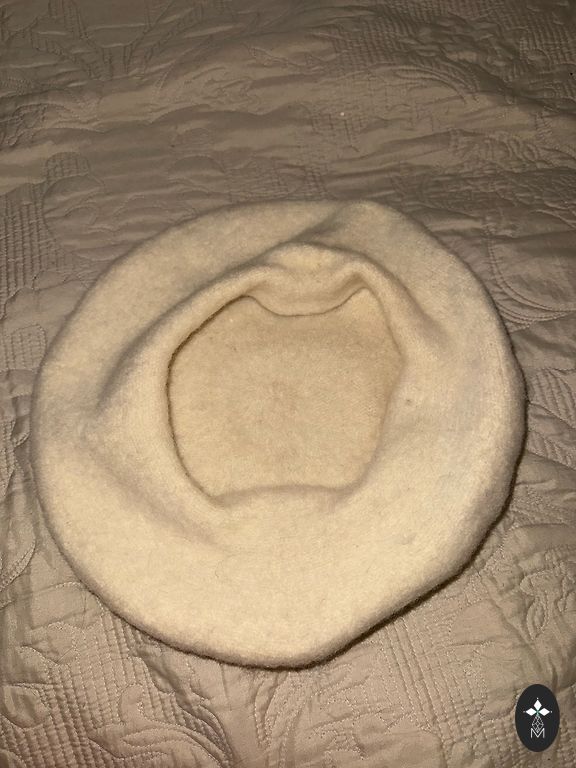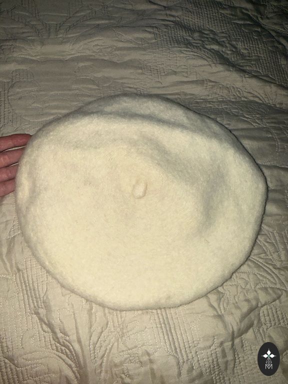 Куплено в Англии для прогулок с детской коляской, шапка растягивается до 66 см, длина одного края шарфа 95 см, другого - 150 см (та часть шарфа, которая оборачивается вокруг шеи); на концах шарфа карманы, каждый с пуговицей.