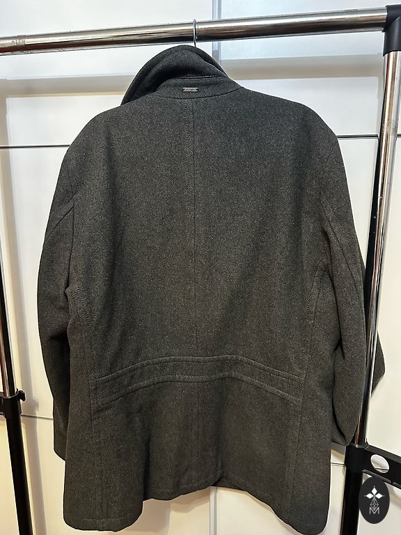 An authentic men's vintage piece in size 52, in excellent condition, crafted using traditional tailoring principles and materials characteristic of European outerwear from the mid to late 20th century. The coat features a structured straight silhouette, a three-button closure, classic notched lapels, and carefully balanced proportions designed for layered wear. Removable lining. The outer layer is made of wool fabric, providing natural thermal insulation, durability, and an elegant texture. The coat’s construction and weight allow it to move naturally while maintaining a clean, well-defined silhouette. Additional photos and/or parameters are available, upon request. Visit andelemandele.lv/arturs_1 for more info