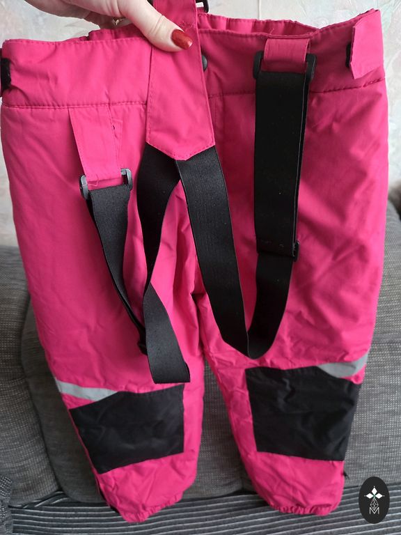 Excellent condition, without defects. The bottoms and knees of the pants are also without wear. Waist width adjustable with Velcro straps. Pants length from waist to bottom 95 cm. Inner seam length 69 cm. Strap length adjustable. Straps can also be removed.