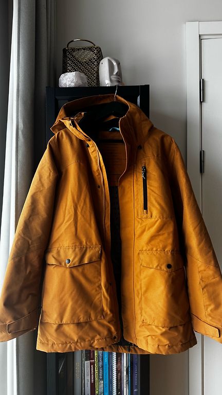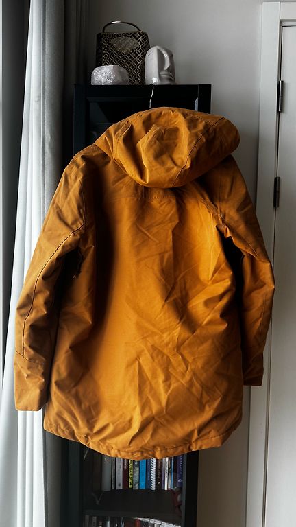 Зимняя одежда шведского бренда, и шведы знают, какой она должна быть, чтобы служить по назначению. Толстая, теплая зимняя куртка, защищающая от ветра и мокрого снега. Чтобы было удобно, наиболее подходяще - маленький XL. Носилась 1 сезон не как повседневная куртка. Длина 88. Под мышками 56.