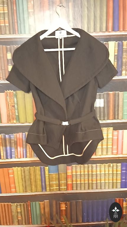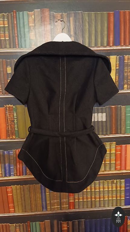 Ostetud siit Andelest, eemaldasin sildi, kuid ei kandnud, veidi liiga väike. Karusnaha imitatsiooniga krae on nööbitav, all on kangast krae, võlts taskud kaunistatud nahaimitatsiooniga. Selg on täiesti musta kangast. Vooder on 65% polüester, 35% viskoos. Voodriga. Rinnaümbermõõt 53 cm x 2, talje 51 cm x 2, pikkus 55 cm, õlgadel 40 cm.