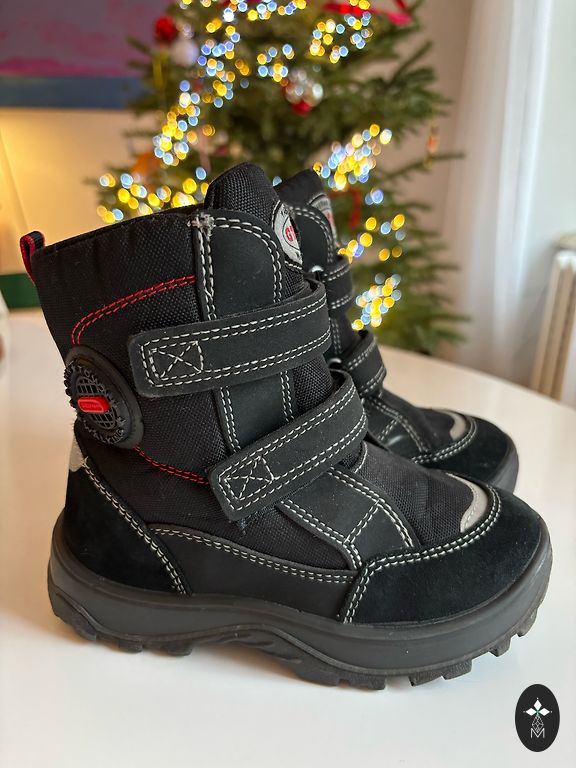 Selling children's boots. The condition is good, no defects. Color black Kuoma boys' winter boots Putkivarsi are very nice and practical. These boots have an interesting pattern that gives them a unique look. They are made from water-repellent material, so feet stay dry even in wet weather. Putkivarsi boots are very warm, making them perfect for everyday wear on cold winter days. There are reflectors on the front and back, which increase safety in the dark. These boots are not only functional but also stylish, making them a great choice for any boy. Overall, Kuoma Putkivarsi boots are a reliable and comfortable solution for the winter season.