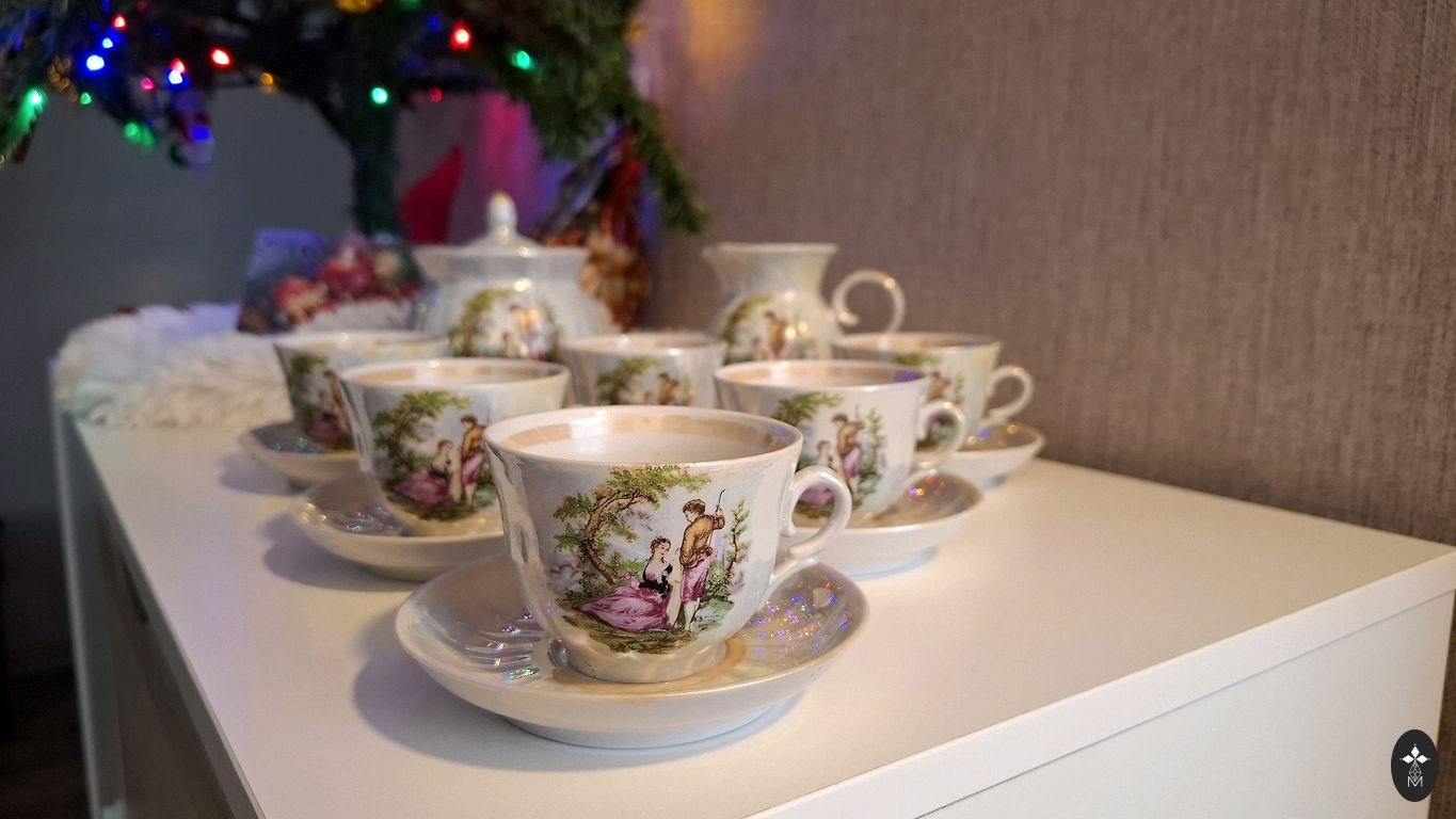 5 puodeliai (vieno trūksta).
