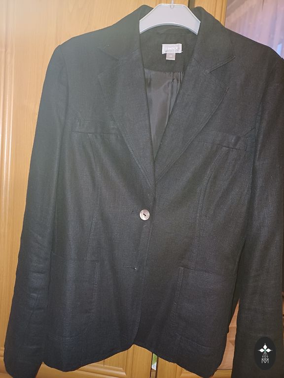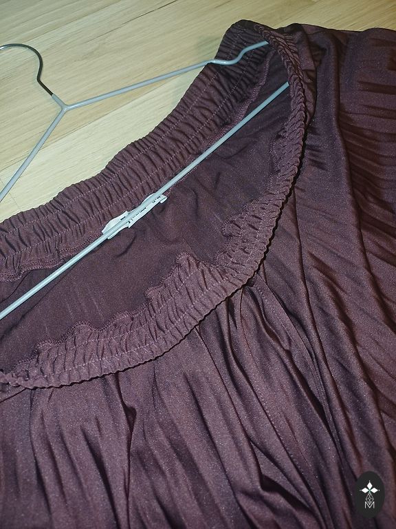 Brown half-coat, length up to the knees (100 cm), form-fitting, with pockets, lightweight, stylish.