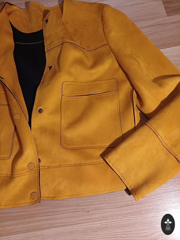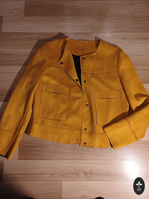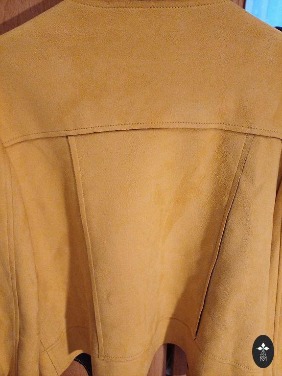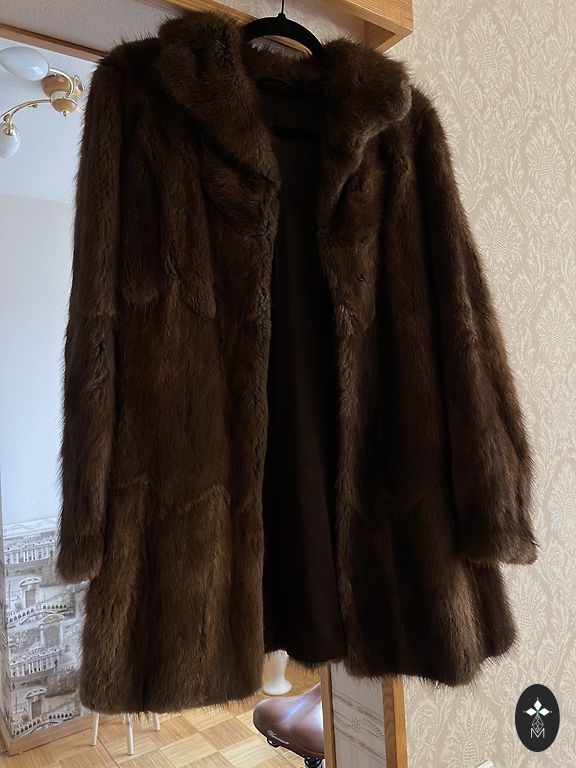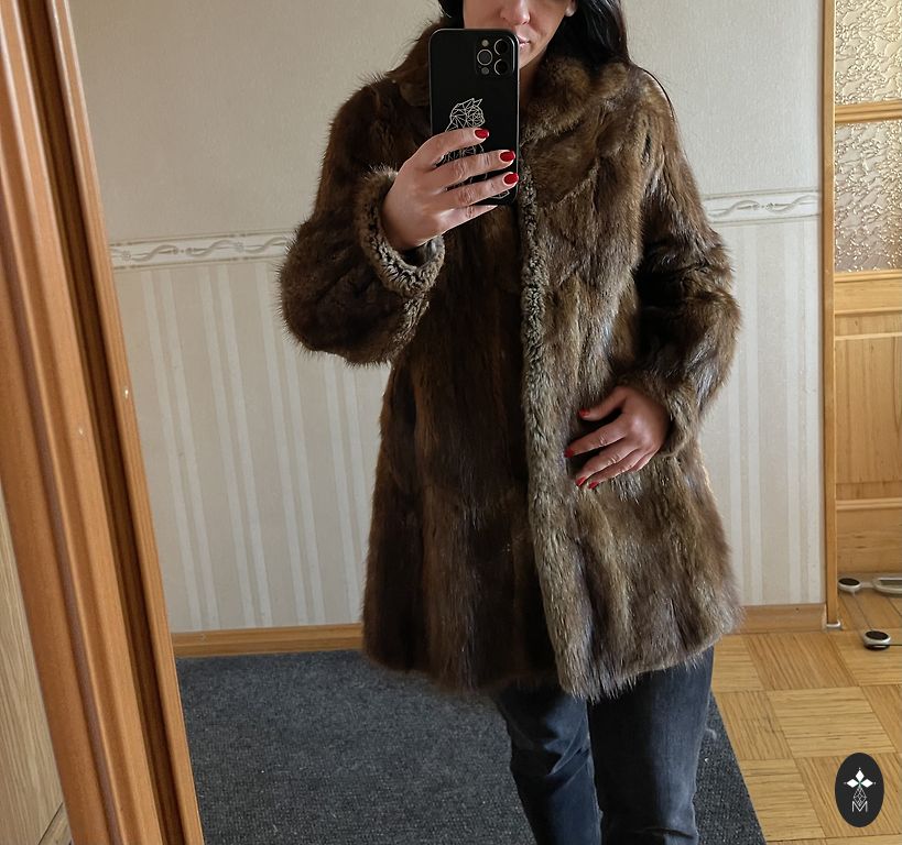 Sheepskin coat up to the knees, comfortable, lightweight, warm.
