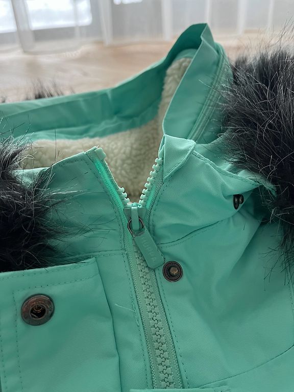 Müün pärast ühe lapse kandmist väga sooja parka tüüpi jope.