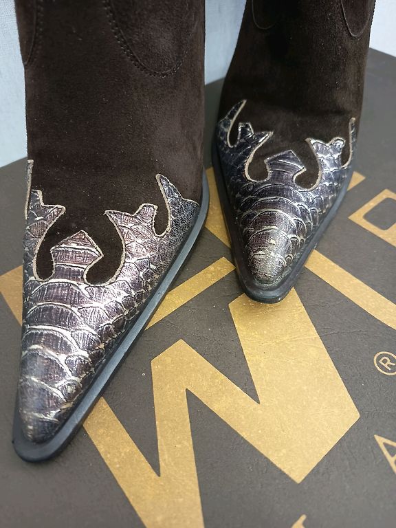 Цвет хаки, очень красивые. Длина 55 см. В щиколотке 13 см. В голенище 18-19 см. Каблук 2,5 см.