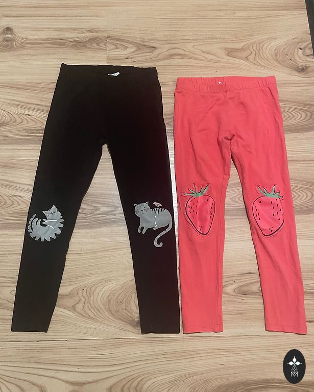 116. izmērs, iekšstara - 43 cm, melnie ar vienradžu aplikācijām - siltie, ar regulējamu jostasvietu