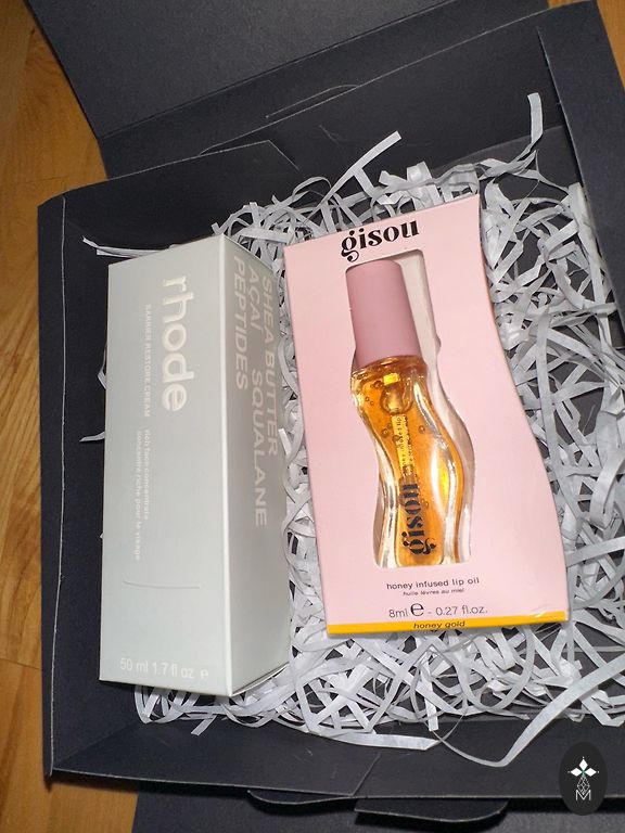 komplekta ieklauts rhode glazing milk, rhode barrier restore cream, rhode jelly bean lip tint, rhode watermelon slice lip tint un rhode “toasted teddy” vaigu sartums