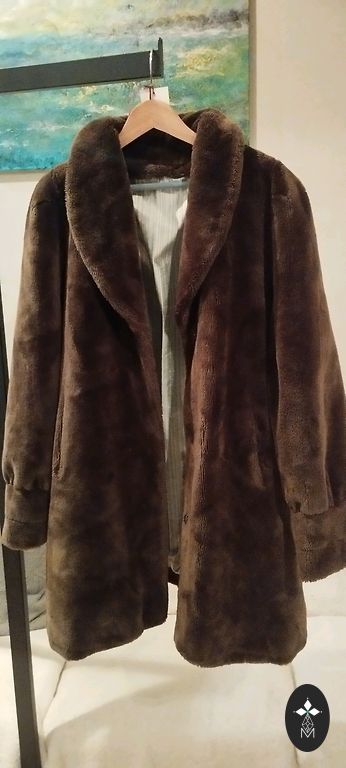 Pirktas prieš metus, dėvėtas 2 kartus į teatrą. UK 20 dydis, tiks iki maždaug 125 cm krūtinės. Yra 2 mygtukų eilė, 2 gilios kišenės, diržas. Labai gerai lieknina figūrą. Tiks ir didesnei krūtinei. Ant 170 cm ūgio bus tiesiai iki kelių. Pristatymas NEMOKAMAS.