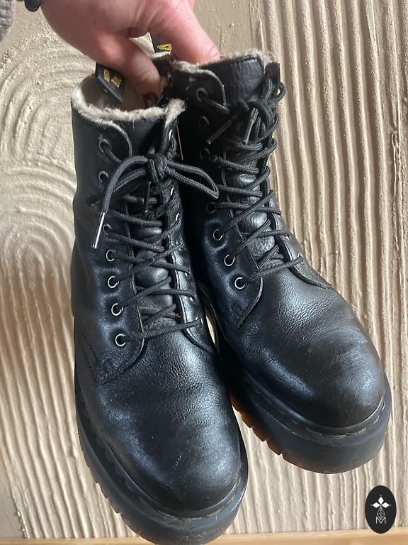 Platforminiai Dr.Martenai, šokinėjantys padai, yra užtrauktukas ir taip pat raišteliai, kad būtų galima sutraukti tvirčiau. Yra dėžė.