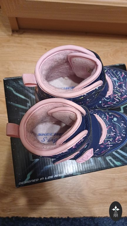 The boots fit size 32. One boot has a worn-out hole in the heel inside.