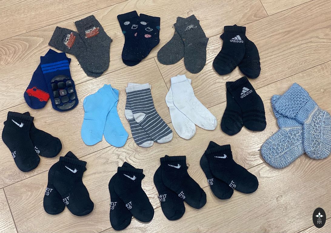 Nors ilgai nepavyko naudoti, tačiau mėlynos kojinės buvo mėgstamiausios, jas dengia nedideli vilnos gumulėliai. Smėlinės buvo laikomos atsargoje.