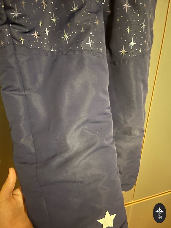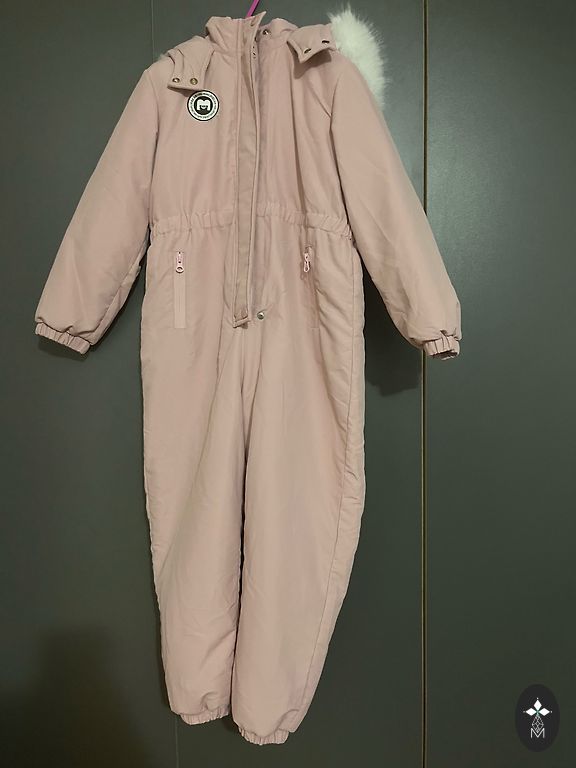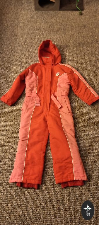 Foršs komplekts, der pat uz 140 cm, ir lietojuma pazīmes, jaku vilka no rudens līdz pavasarim, bet ziemā nesala un siltāka laika nebija karsti. Ir pleķīši, kas bildēs norādīti. Biksēm celīši padiluši. Bikse Lassie.