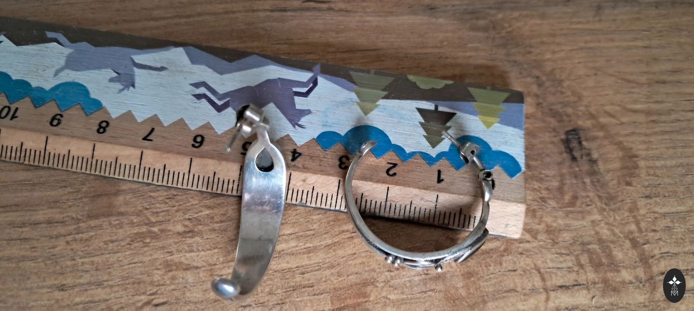 Sudraba auskari 925°, svars 9,5 gr., diametrs 3 cm, cena 85,-€, labā stāvoklī.