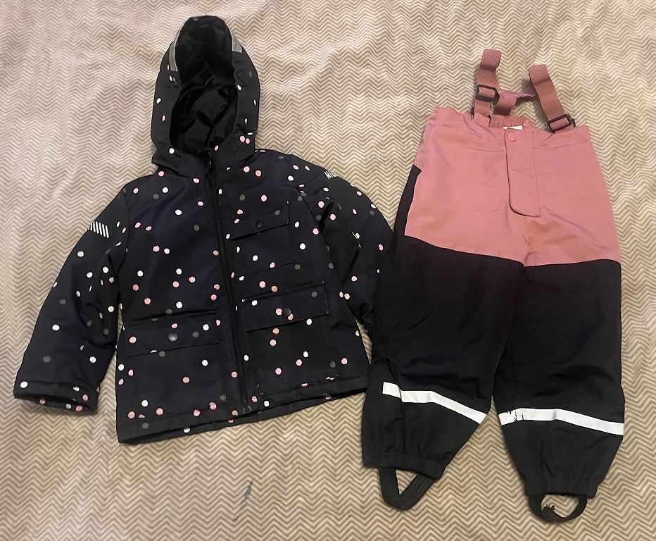 Apģērbs meitenei 7-8 un varbūt arī 9 gadiem derēs. Lietas nav jaunas, bet ļoti labā stāvoklī! Bez bojājumiem, rāvējslēdzēji darbojas. Viss izmazgāts un tīrs :)