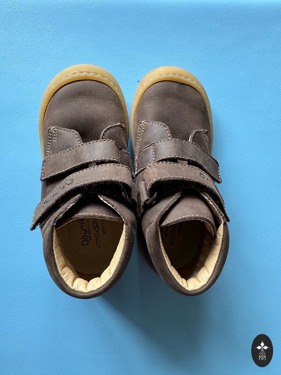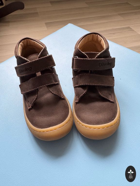 Очень удобные, очень легкие ботиночки. Размер 22, стелька 14 см. Красиво смотрятся на ножках.