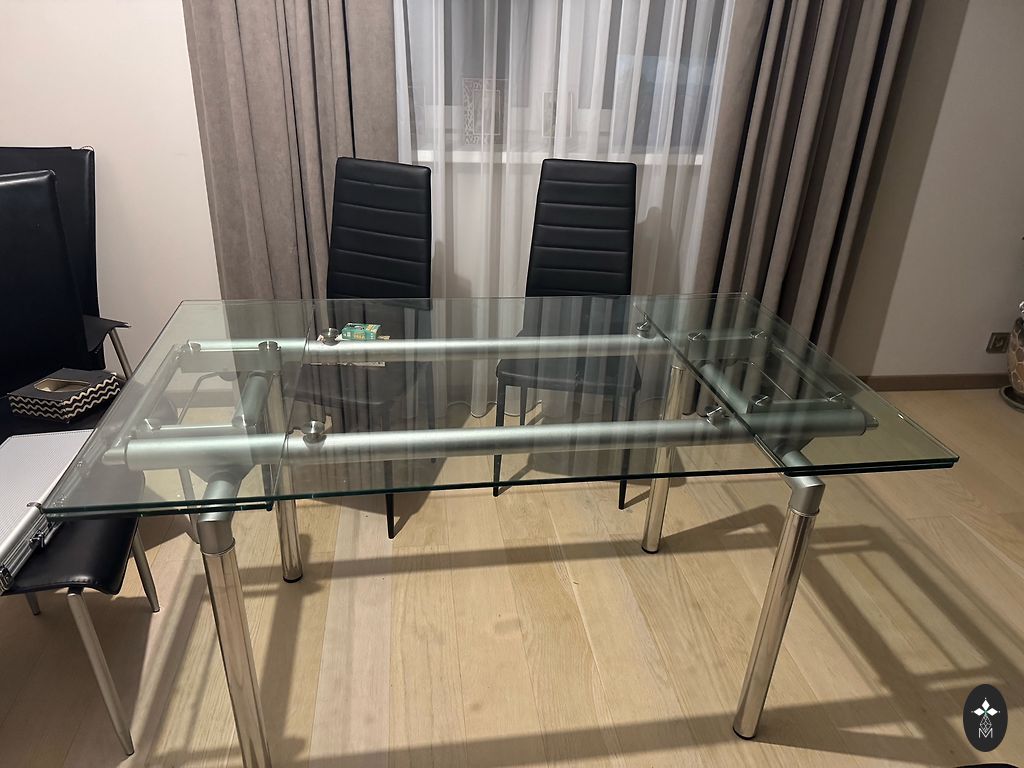 Müün karastatud klaasist lauda. Mõõtmed: L-0,79cm. K-0,69cm. S-0,49cm.