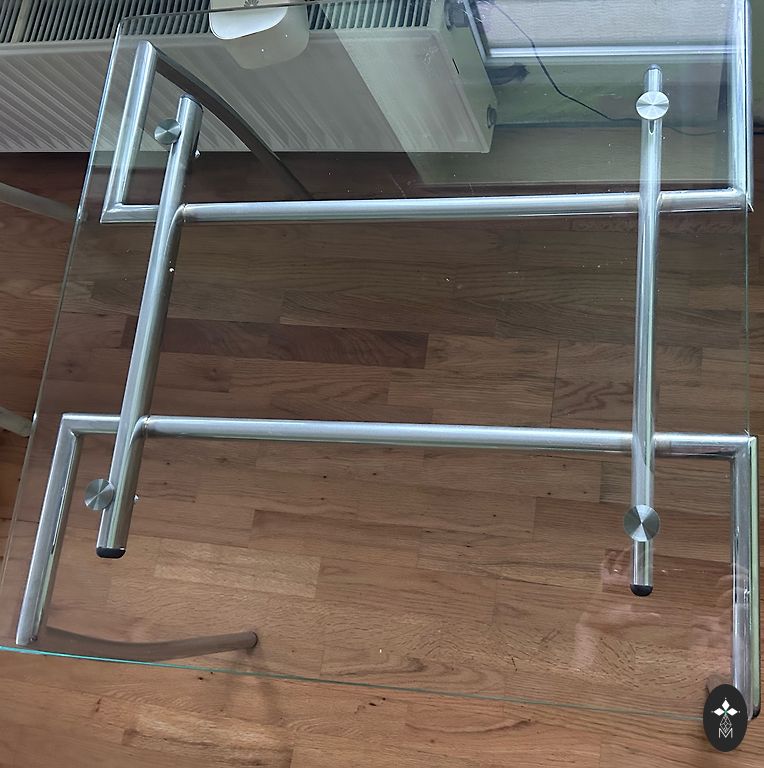 Selling a tempered glass table. Dimensions: L-0.79cm, H-0.69cm, D-0.49cm.