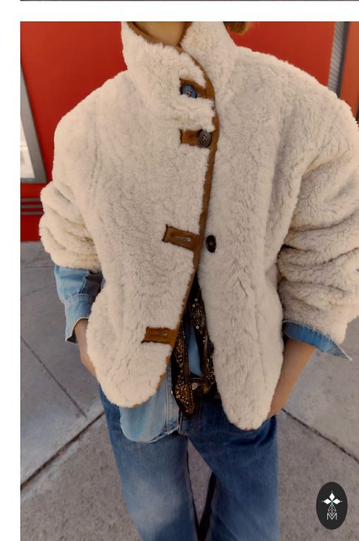Women's aviator-style jacket made of faux leather with a warm faux sheepskin lining. Very warm and comfortable, suitable for autumn and winter. Worn only twice, in very good condition.