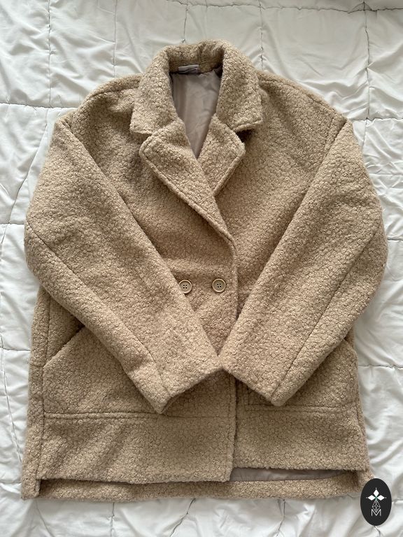 Labai gražus paltas. Dėvėtas 3 kartus. Dydis XL, bet gražiai atrodys oversized ant S/M dydžio. Labai minkštas ir malonus audinys. Kokybiškas, tikrai nesivelia.