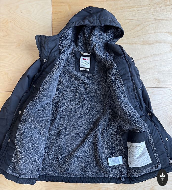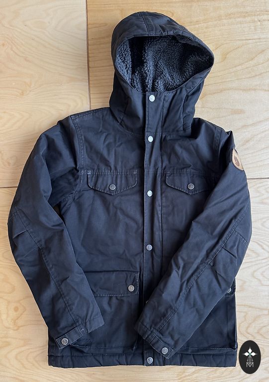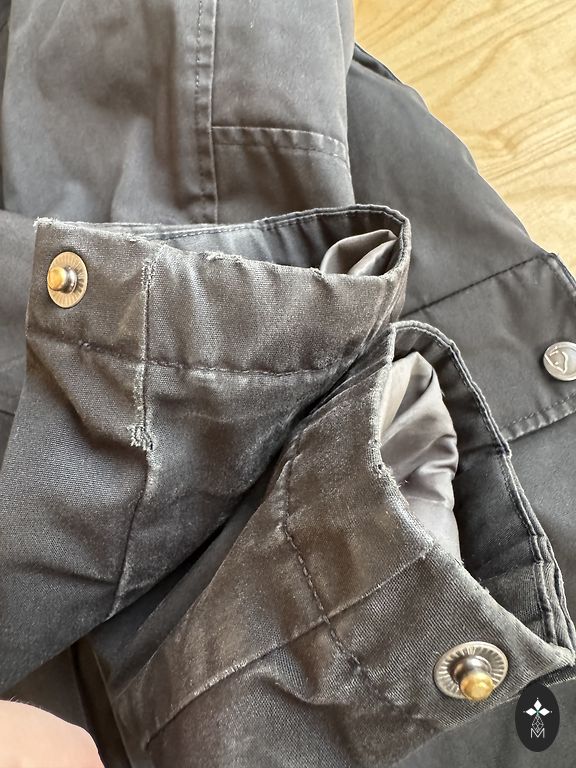 Striukė su kailine apykakle. Natūralus lapės kailis. Yra defektų ant rankovių (suspaustas kailis), tačiau apskritai geros būklės.