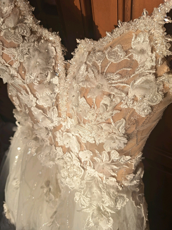 Kleit näeb välja luksuslik, efektiivne ja kallis — ideaalne valik pruudile, kes soovib olla ainulaadne ja kordumatu.