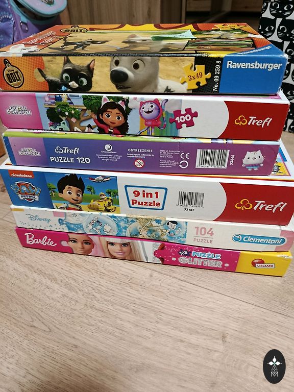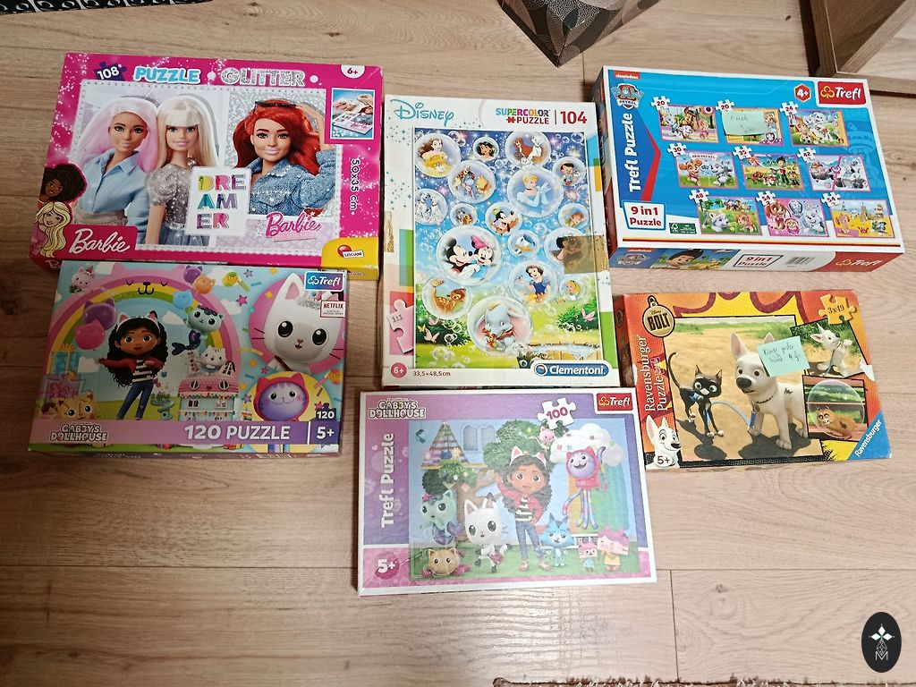 Müün 4 Trefl puslet - igas 30 tükki. Cars, Pae Patrol, Pepa Pig ja Mickey Mouse. Tütar on neid palju kordi kokku pannud, sest kõik on põnevad.