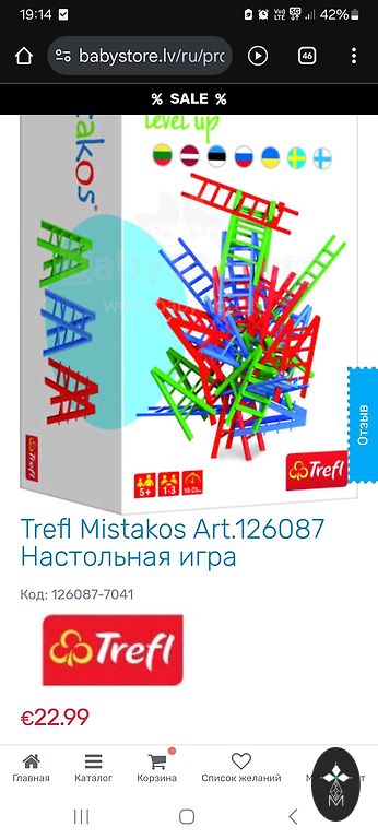Galda spēle Trefl Mistakos Level Up (Mistakos: Augstākais līmenis). Tā ir arkādes tipa spēle, kurā spēlētāji pa vienam būvē torni no trīs krāsu plastmasas kāpnēm (zilām, zaļām un sarkanām). Mērķis ir novietot visas savas kāpnes, nesagraujot konstrukciju.