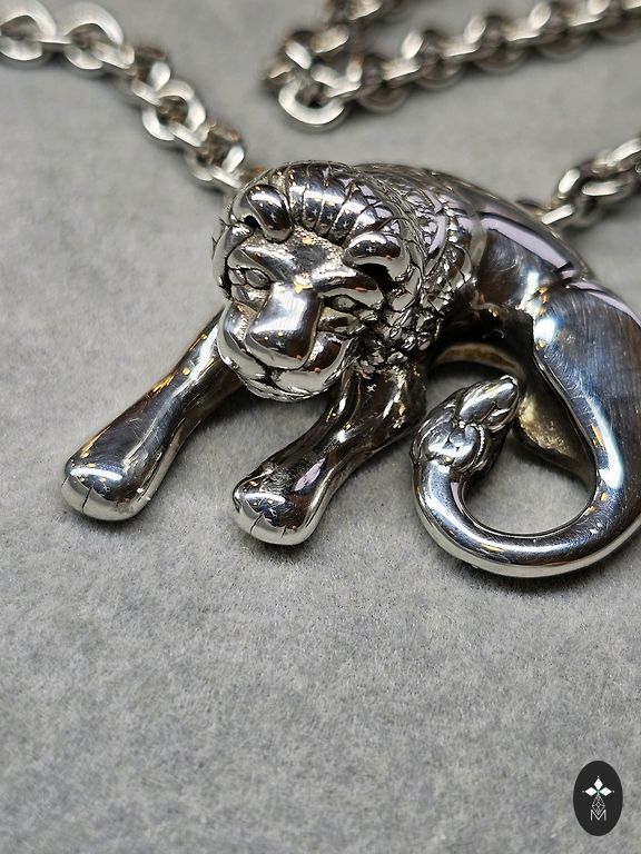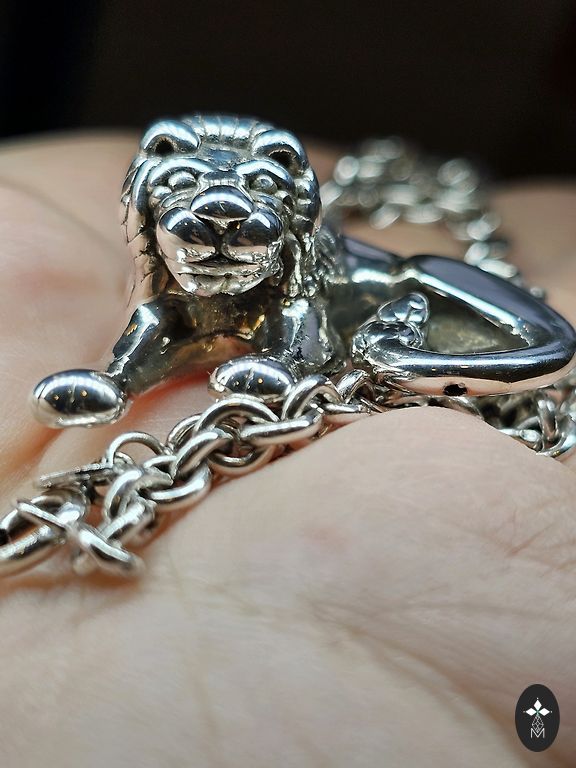 Circa 1920s. Sent from a Polish antique shop. Silver pendant with natural Baltic amber on a long silver anchor chain. The chain is not as old. Pendant size 7cm x 2.3cm. Chain length 61cm.