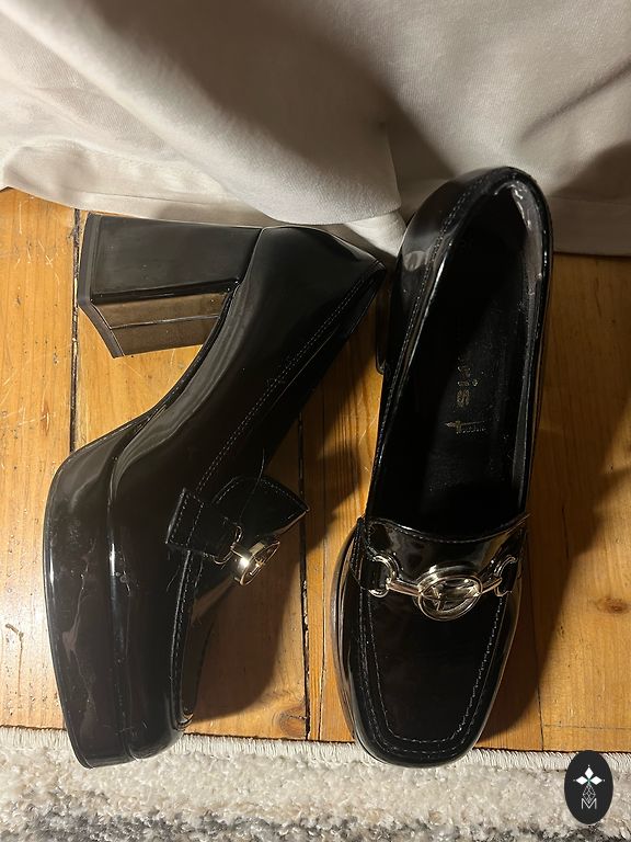 Два раза надеты туфли. Слишком большие, так как мне подходит 38 размер, но туфли больше подходят для размера 38,5-39. Первый раз использованы для мероприятия, второй раз для фотосессии. Цена 15 евро.