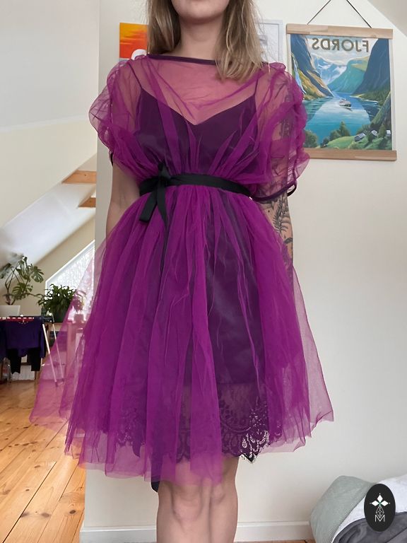 Tüllkleit, mida on kantud üks kord. Veidi üle põlve.