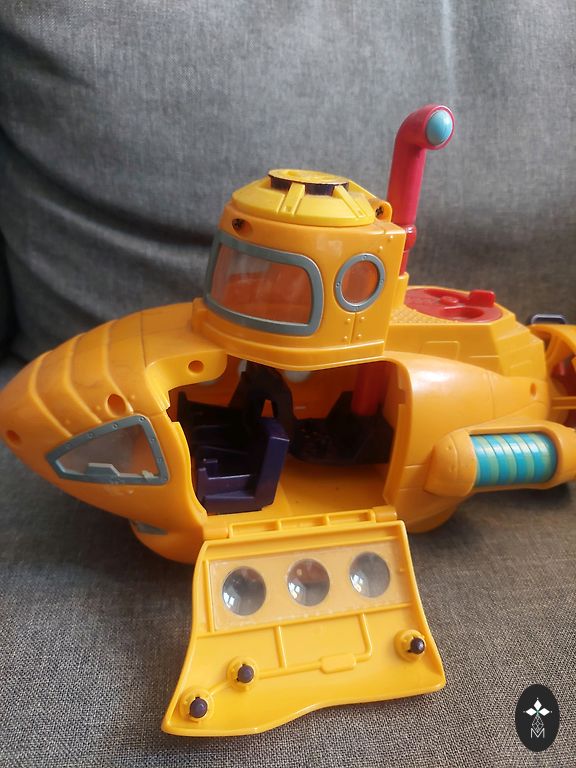 Lėktuvas su muzikiniu fonu, mirksinčiomis lemputėmis, durys atsidaro. Komplekte yra figūrėlės. Baterijos niekada nebuvo pakeistos! (Nereikia dažnai keisti, kaip kituose žaisluose). Yra nedidelių įbrėžimų.