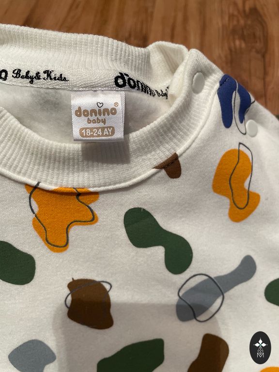 Gražios žemuogės, bet, deja, su daug dėmių, labai mieli marškinėliai. Pirkta nauja, dėvėta tik vieno žmogaus. Galbūt kam nors dar pravers mokantis valgyti! Pristatymas pirkėjui.