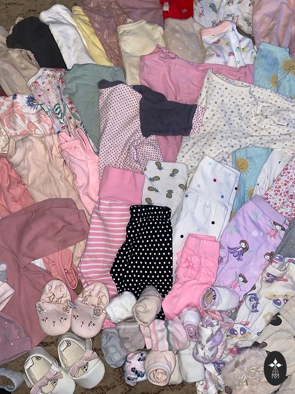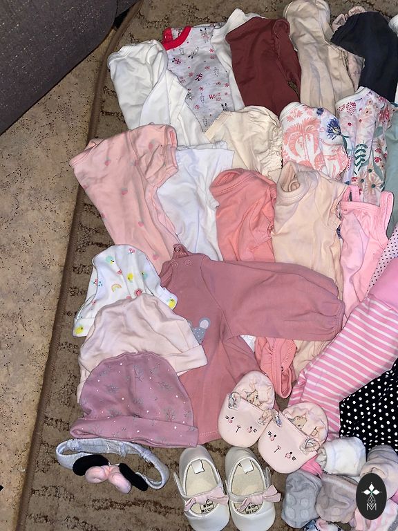 No defects, a soft velour dress with hearts from Lindex, a warm sweater with bunnies from Keita, a dress with cherries from H&M, a burgundy dress that is soft and warm, has a lining, fabric is flannel, will definitely fit longer than up to 6 months.