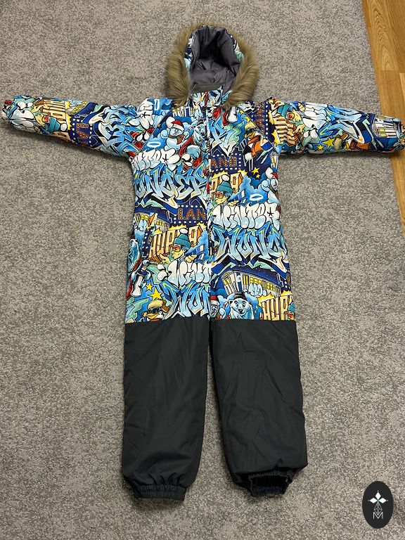 Columbia talvekombinesoon. Sobib ligikaudu 90-98 cm poistele, kuna Out Grown õmblused on lahti tehtud. Puudus - vooder on seestpoolt värvunud. Väljastpoolt kahjustusi pole. Saatmine on hinna sees.