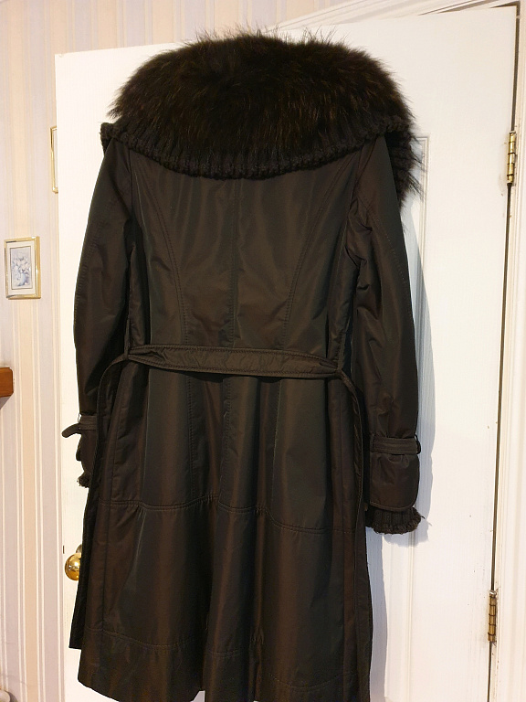 Šiltas paltas gražios pilkai mėlynos spalvos. Beveik nedėvėtas, bet kai kur reikia pašalinti pūkelius, nes sudėtyje yra vilnos, o pūkeliai periodiškai atsiranda. Tankus, šiltas su pamušalu. Tinka ir M, ir L dydžiui.