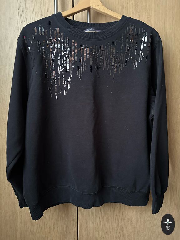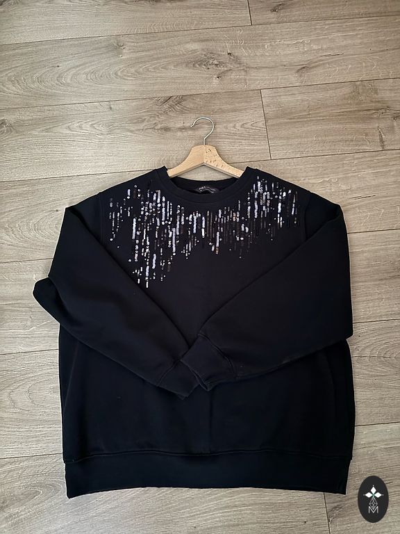 Черный, тонкий "oversized" свитер. Надевался 1 или 2 раза, в очень хорошем состоянии. Укороченные рукава.