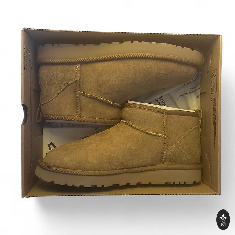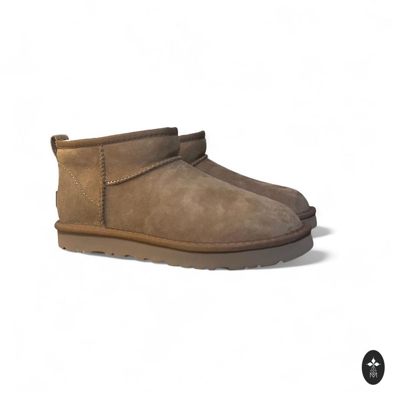 Stilingi ir patogūs UGG batai universalios smėlio spalvos. Pagaminti iš minkšto natūralaus zomšo su šilta avikailio pamušalu, kuris suteikia puikią izoliaciją ir visos dienos komfortą. Ultra-mini siluetas suteikia modernią išvaizdą ir leidžia lengvai derinti su laisvalaikio ir gatvės stiliaus apranga. Lengvas, bet patvarus padas užtikrina gerą sukibimą ir kasdienį komfortą. Puikiai tinka rudeniui ir žiemai.