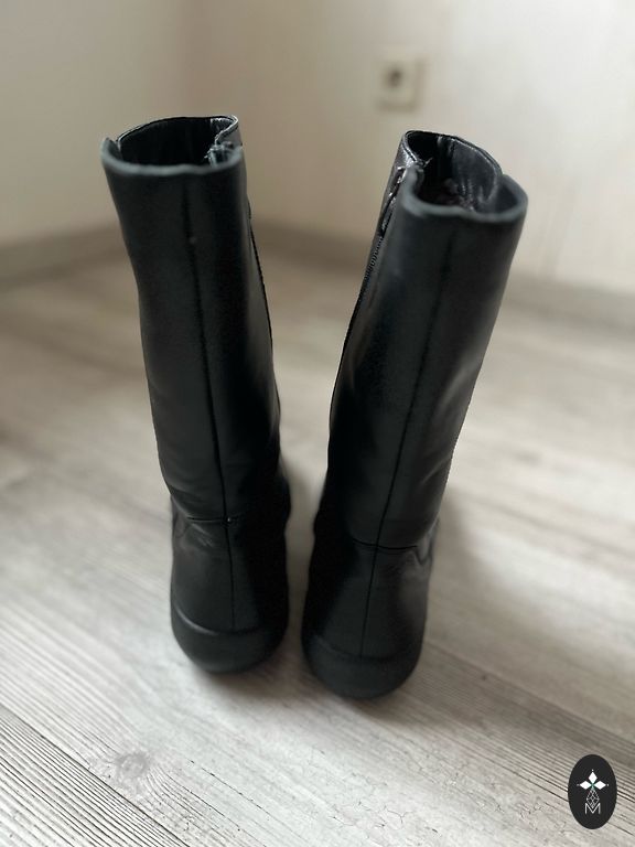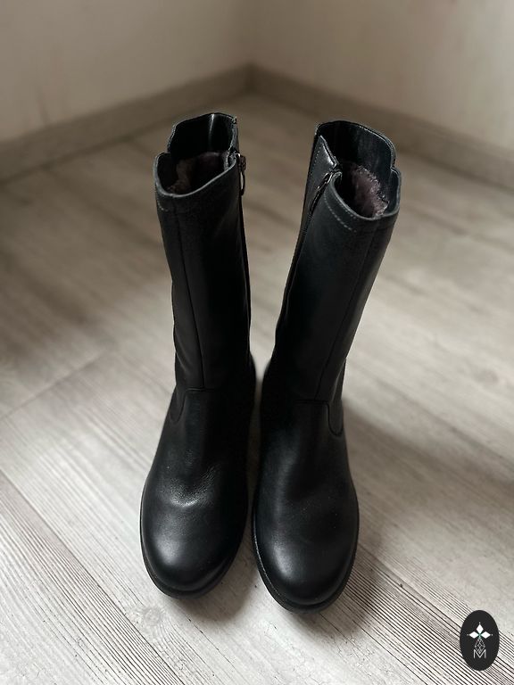 Серые сапоги на каблуке для весны/осени.