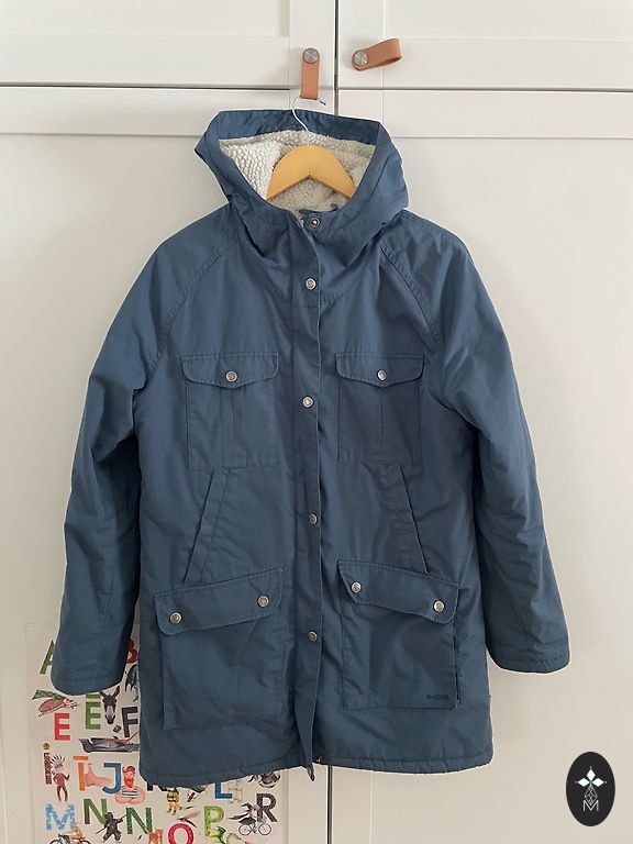 Makia parkas yra tinkamas sudėtingoms oro sąlygoms, su dirbtinio kailio gobtuvu. Striukė turi dvi užlenkiamas rankų kišenes ir logotipo ženkliuką ant rankovės. Užsegama užtrauktuku. Tamsiai mėlyna spalva.