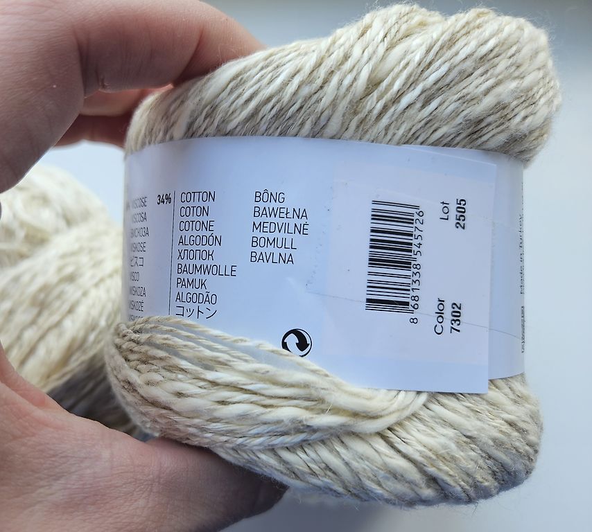 Avižos spalva, 1500 m/100 gr, vienai ritai kitoks atspalvis (mažesnis). Merinosų kardas