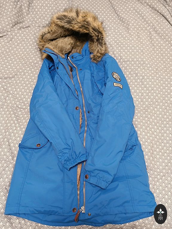 Poiste talvejope, vastab suurusele S, kapuutsiga, 2 taskut ja 1 sisetasku. Parameetrid: kogupikkus õlast 83,4 cm, käe pikkus 60 cm. Jope osteti aasta tagasi, vähe kantud, kandmise märke, defekte pole.
