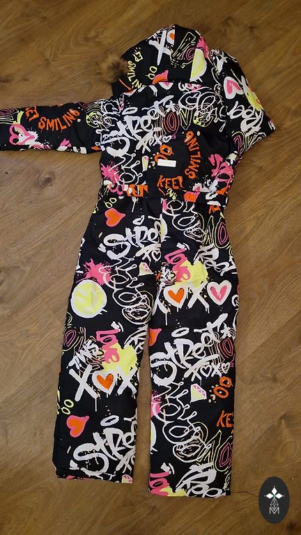 Lassie snowsuit for winter fun used by one child, purchased new. Slightly worn knees and sleeves, lining pulled up in the snowsuit pant legs from boot clips. Everything visible in the photo.