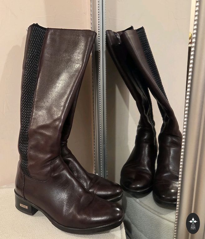 Brown jacket without a collar.