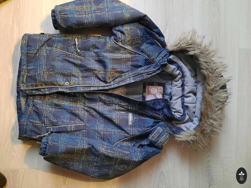 Lego wear ziemas jaka lieliska stavoklī, pirkta jauna, pēc viena bērna, izmērs 104-110, mitrumizturība 10000mm, paredzēta temperaturai līdz -20°C.