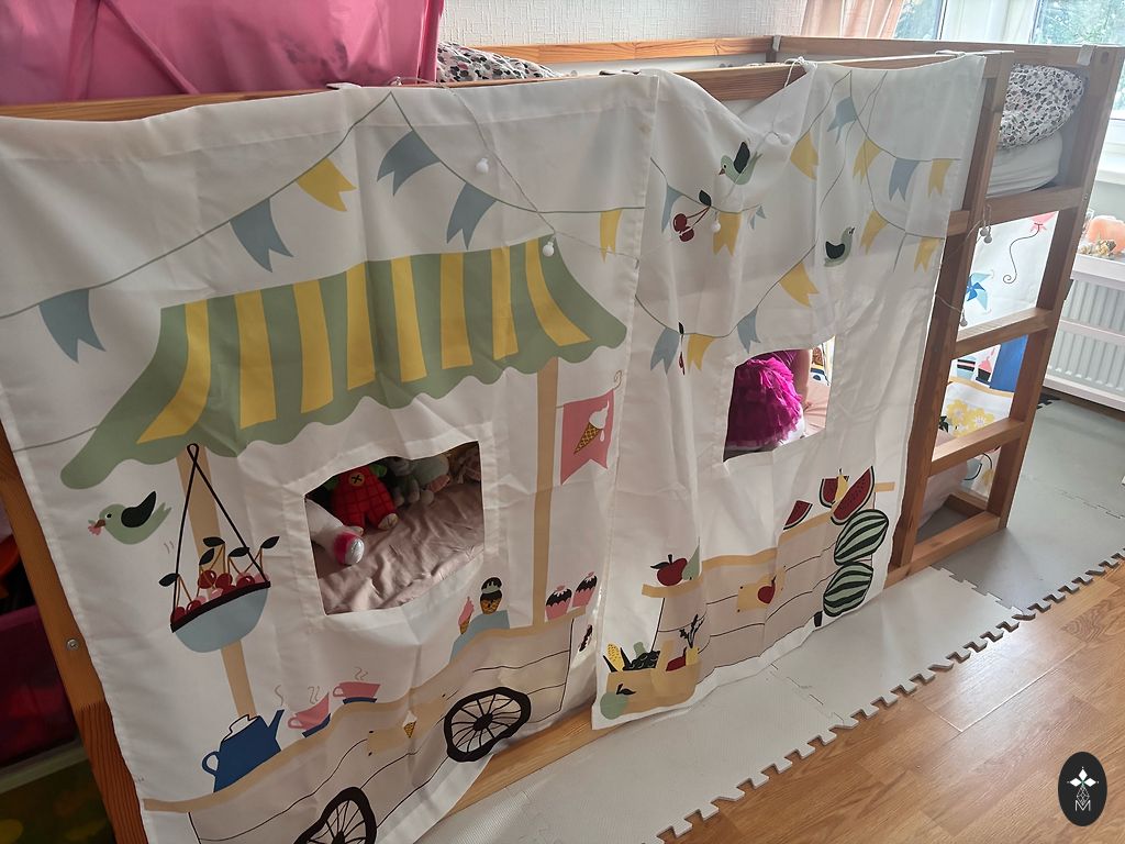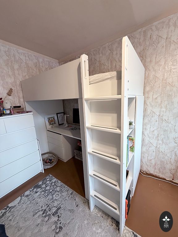 Gultiņa izskatās kā jauna. Nav skrāpējumi. Nav nolietojuma pazīmju. Līdzi dodu ērtu, uz divām pusēm lietojamu matracīti + paladziņi un gultas dekoratīvā apmalīti ( apmalīte lietojama no abām pusēm.