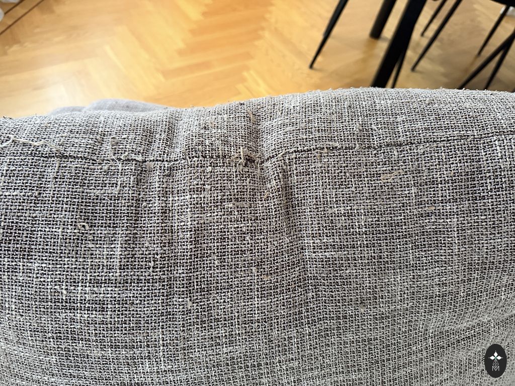 Pati sofa yra patogi ir tiks įvairiuose interjeruose. Katės ištraukti siūlai šonuose, nedideli išvalomi dėmės audinyje, kurias galima išspręsti valymu arba uždengimu.