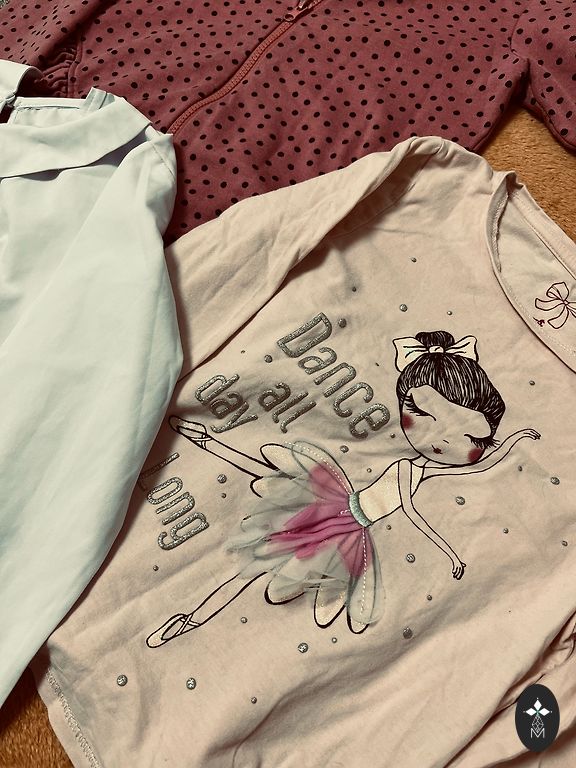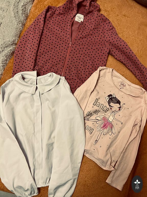 Melni svārki-122cm, legingi-122cm, bikses ar punktiņiem-128cm
