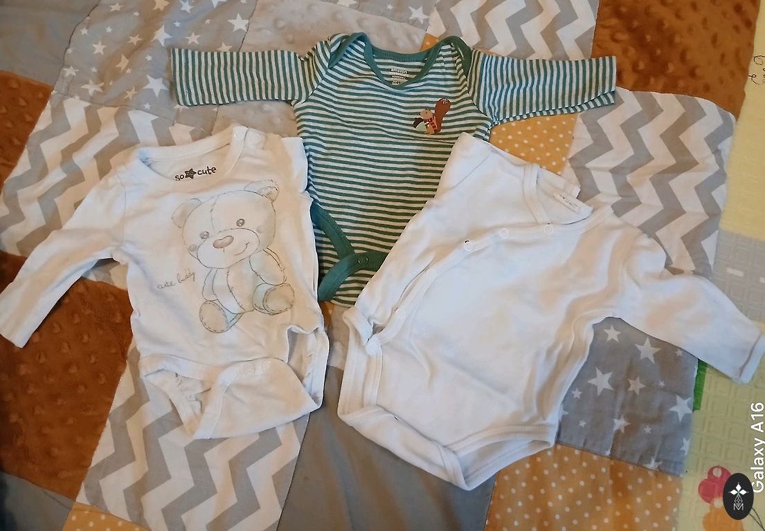 Lietoti, bez pleķiem. Jaciņa derēs līdz 3mēnešiem, bodijiem un biksēm ir 62izmēri.Drēbes vilktas maz, jo ātri izauga no viņām. Sūtu, kur nepieciešams.